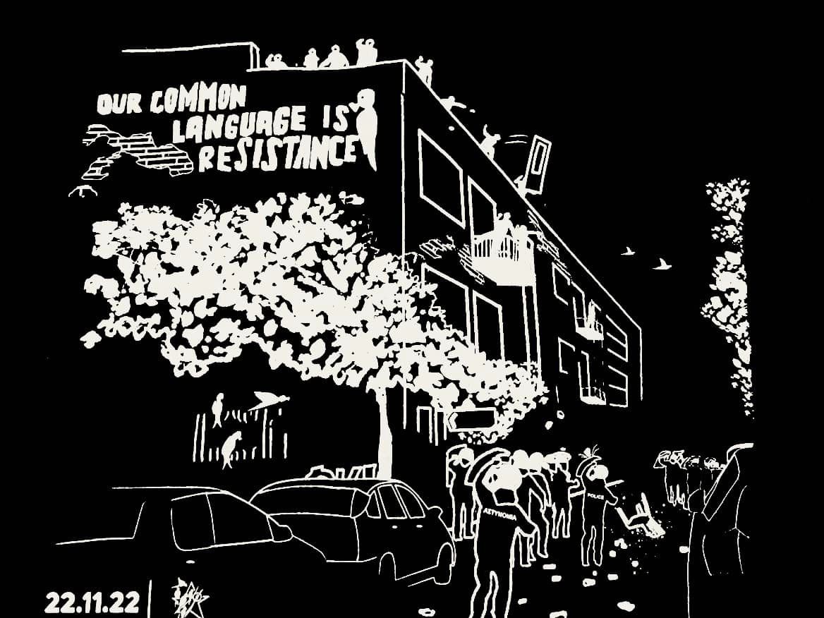 Κράτος, κυβέρνηση και καπιταλιστές μπορούν να συνεχίσουν να ονειρεύονται μια γειτονιά εξευγενισμένη, αποξενωμένη και αποστειρωμένη, αλλά τα Προσφυγικά θα παραμείνουν μια κοινότητα φτωχών, εξεγερμένων και αγωνιζόμενων. Καθιστούμε ξεκάθαρο ότι δεν θα παραδώσουμε ούτε σπιθαμή γης σε κράτος, εταιρίες και κάθε λογής αφεντικά.