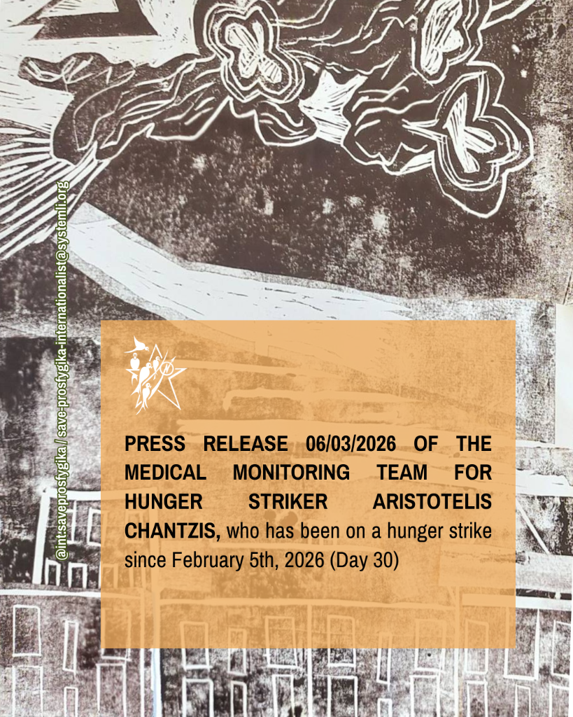PRESS RELEASE 06/03/2026 OF THE MEDICAL MONITORING TEAM FOR HUNGER STRIKER ARISTOTELIS CHANTZIS